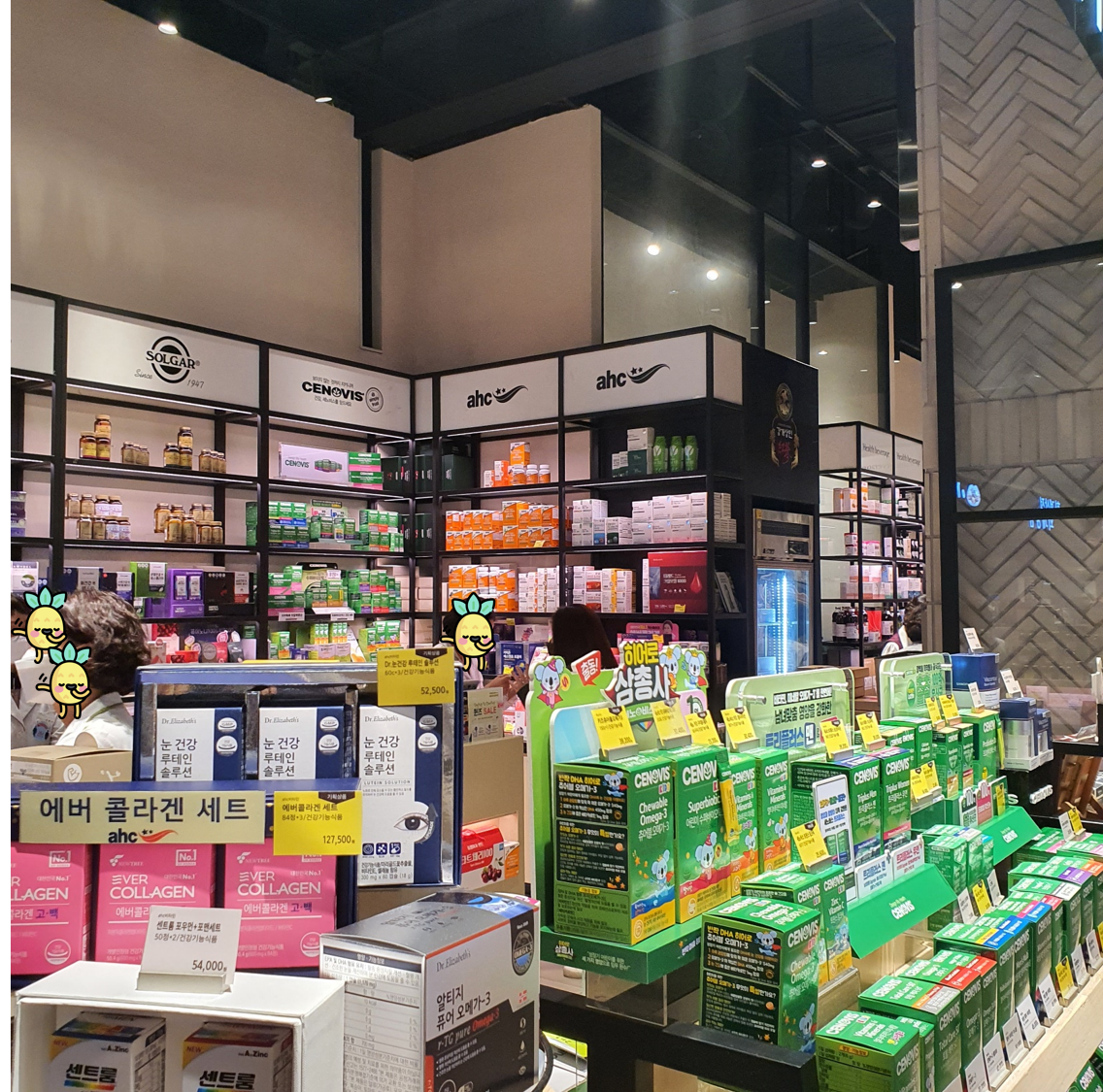 라는 슬로건답게 다양한 유명 건강기능식품 브랜드가 입점 되어 있지만, 백화점 매장 크기에 따라