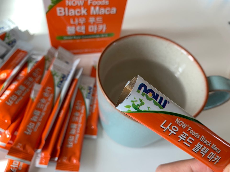 간편하게 물에 타 먹을 수 있는 나우푸드 블랙마카를 선택해보자.